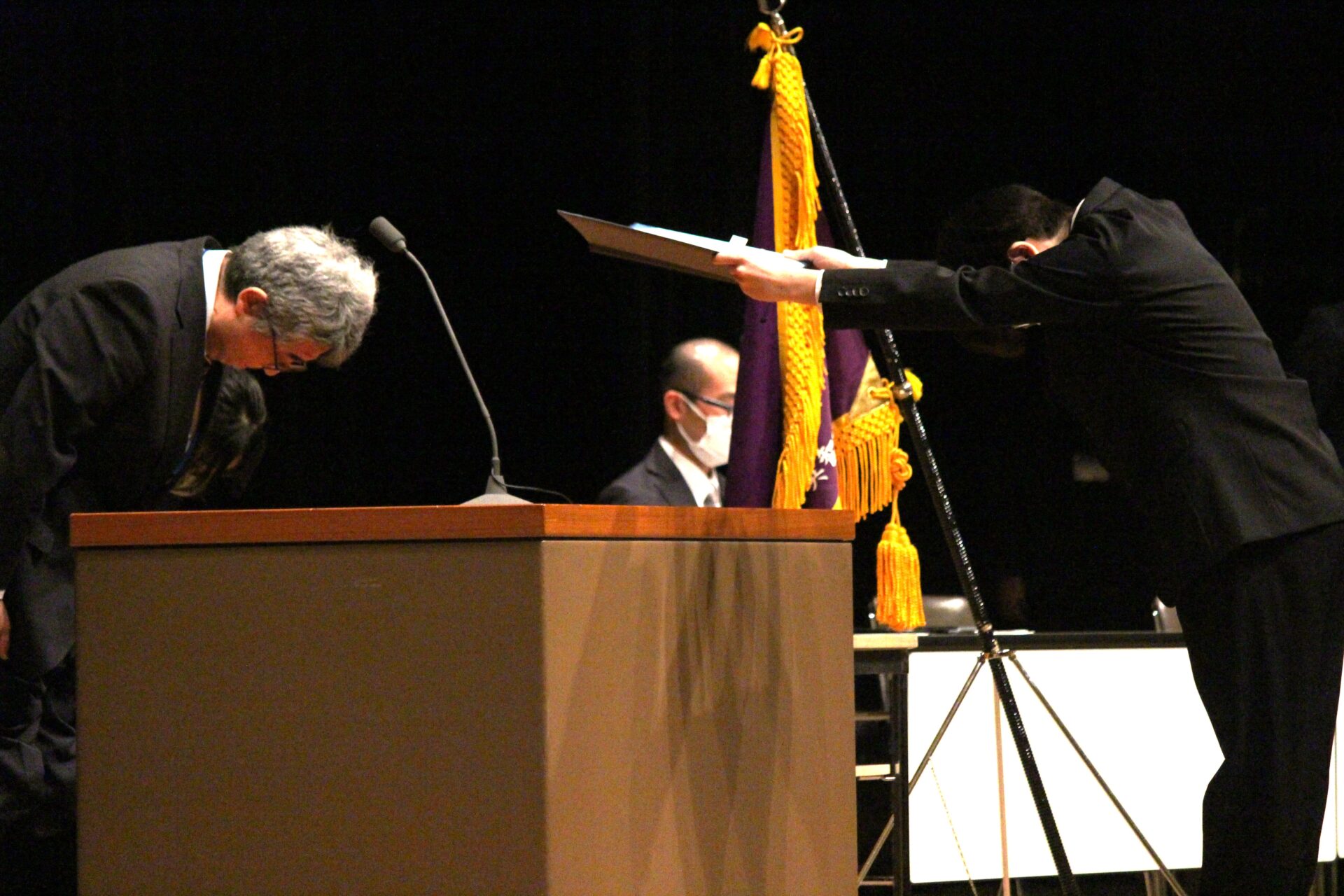 2月25日(水)に長岡市立劇場にて通学コース、通信教育コースの3年次生が集まり、「同窓会入会式・同窓会総会」、「卒業式予行練習」、「各種表彰」を行いました。